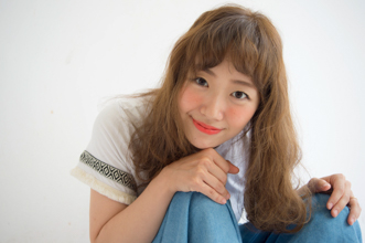 毛先中心にかかっている、パーマヘアに、トップだけ巻きを加えました。 ストレートアイロンで少しずつ拾って巻いています。 カラーリングは、ブラウンベースのマット系カラー。 前髪は眉が見えるくらいの長さに。 メイクで可愛らしくしました。 普段いらっしゃる、お客様にも対応可能なスタイルです。